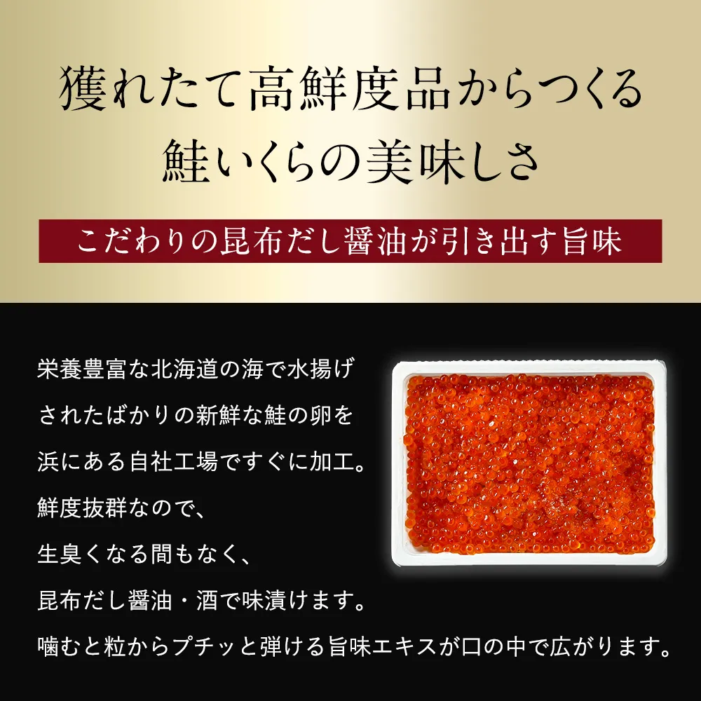 | 商品説明 | 北海道産 鮭イクラ醤油漬け |