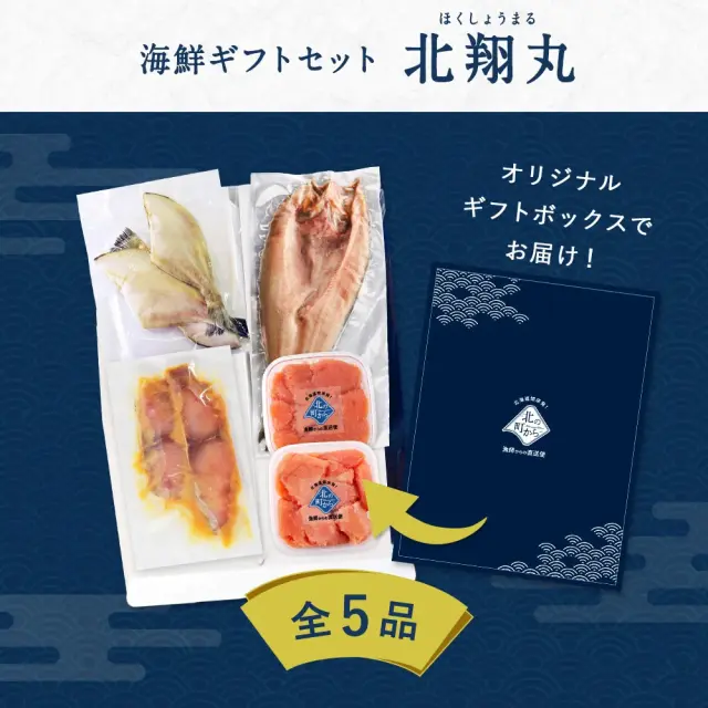 | 原材料 | 【たらこ(切れ子)】助宗鱈の卵巣、食塩、発酵調味料、ソルビット、調味料(アミノ酸等)、酸化防止剤(V.C)、甘味料(甘草・ステビア)、ナイアシン、酵素、発色剤(亜硝酸Na)、着色料(赤102・黄5) 【明太子(切れ子)】助宗鱈卵(北海道羅臼産)、食塩、清酒、唐辛子、還元水飴、魚介エキス、蛋白加水分解物、調味料(アミノ酸等)、甘味料(ステビア)、酸化防止剤(V.C)、ナイアシン、着色料(赤102赤3・黄3・黄5)発色剤(亜硝酸Na) 【ホッケ(一夜干し)】ホッケ(北海道羅臼産)、食塩 【宗八カレイ一夜干し】宗八カレイ(北海道羅臼産)、食塩 【シイラ西京漬け】シイラ(知床半島沖)、味噌(国内製造)、砂糖、甘酒、米発酵調味料、蔵造酢、食塩、醤油、魚醤、清酒、ウコン末、食物繊維、酵母エキス、白キクラゲ抽出物/増粘剤(加工デンプン、キサンタン)、(一部に小麦・オレンジ・大豆を含む) |