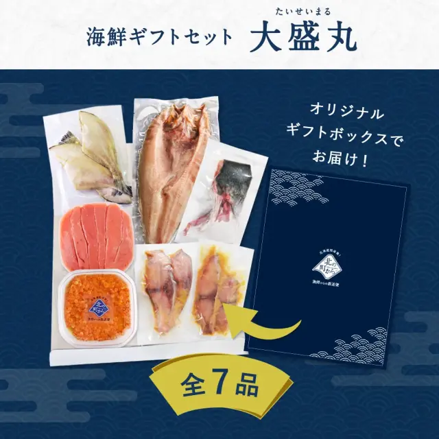 | 原材料 | 【醤油漬けいくら】鮭卵(イクラ)、醤油、米醗酵調味料、植物たん白加水分解物、還元水飴、味醂、魚介エキス、酵母エキス、調味料(アミノ酸等)、(原材料に小麦、大豆を含む) 【たらこ】助宗鱈の卵巣、食塩、発酵調味料、ソルビット、調味料(アミノ酸等)、酸化防止剤(V.C)、甘味料(甘草・ステビア)、ナイアシン、酵素、発色剤(亜硝酸Na)、着色料(赤102・黄5) 【ホッケ(一夜干し)】ホッケ(北海道羅臼産)、食塩 【ブリ西京漬け】 ブリ(知床半島沖)、味噌(国内製造)、砂糖、甘酒、米発酵調味料、蔵造酢、食塩、醤油、魚醤、清酒、ウコン末、食物繊維、酵母エキス、白キクラゲ抽出物/増粘剤(加工デンプン、キサンタン)、(一部に小麦・オレンジ・大豆を含む) 【ブリカマ】ブリ(北海道羅臼産) 【宗八カレイ一夜干し】 宗八カレイ(北海道羅臼産)、食塩 【シイラ西京漬け】 シイラ(知床半島沖)、味噌(国内製造)、砂糖、甘酒、米発酵調味料、蔵造酢、食塩、醤油、魚醤、清酒、ウコン末、食物繊維、酵母エキス、白キクラゲ抽出物/増粘剤(加工デンプン、キサンタン)、(一部に小麦・オレンジ・大豆を含む) |